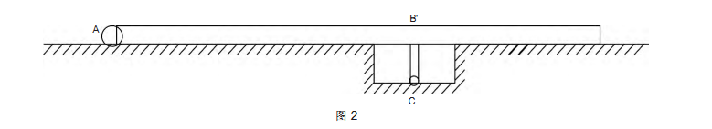 液壓翻版一般是3.5米寬,18米長(zhǎng)的平臺(tái),可以承載需要卸料的汽車(chē),載重一般在60t以上,一端(卸料端)的兩側(cè)是固定軸端(如圖2所示中的A點(diǎn),)翻板以此點(diǎn)為固定圓心頂起,在平臺(tái)中間部位(如圖2所示中的B點(diǎn))的兩側(cè)設(shè)置兩個(gè)多級(jí)液壓缸,作為頂升動(dòng)力,液壓缸的固定端固定在設(shè)備基礎(chǔ)上(如圖2所示中的C點(diǎn))。