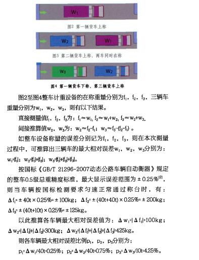由此可見,在間接測量過程中,因誤差傳遞導(dǎo)致連續(xù)過車時(shí) 車輛精度不斷下降,特別是對重量較輕車輛影響較大,這是誤差 傳遞與累計(jì)的必然結(jié)果,如果要清除此累計(jì)誤差,必須等到一輛 車單獨(dú)在稱時(shí)進(jìn)行一次單車稱量。