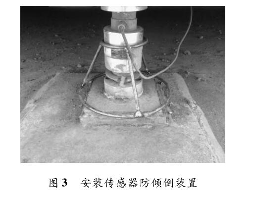 隨著天氣氣溫升高,出現(xiàn)新增傳感器脫離壓頭傾倒情況,導(dǎo)致設(shè)備無(wú)法正常計(jì)量。分析原因?yàn)椋撼芋w經(jīng)過(guò)過(guò)載計(jì)量后,秤體平衡性遭到一定破壞,并且秤臺(tái)在高溫天氣熱脹冷縮變化較大, 傳感器與秤體結(jié)合不緊密,空隙較大,這樣傳感器就容易傾倒,傳感器出現(xiàn)橫向力、側(cè)向力等非受力方向上的加載力,容易導(dǎo)致傳感器損壞,根據(jù)此情況制作了傳感器防傾倒裝置,經(jīng)過(guò)試驗(yàn)有效的避免的傳感器的傾倒現(xiàn)象。